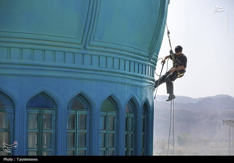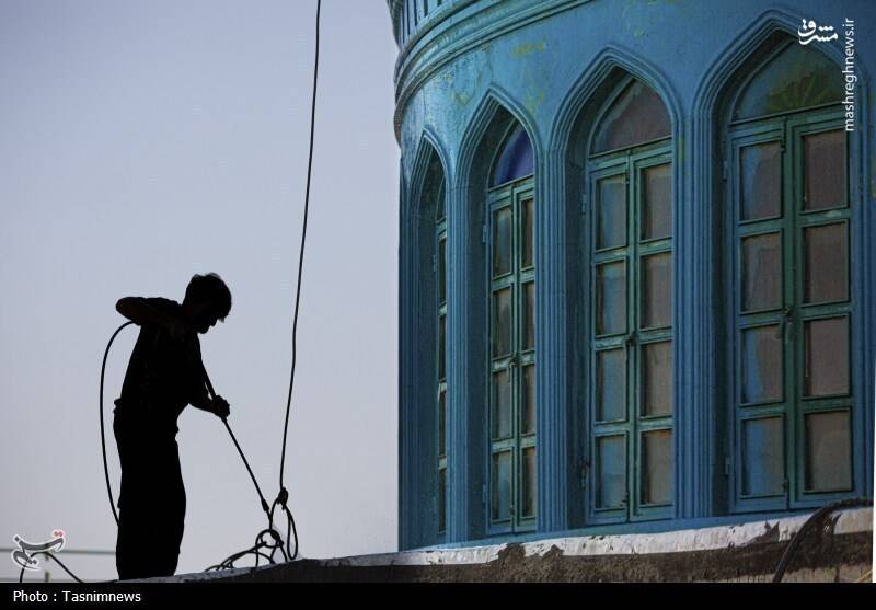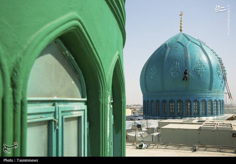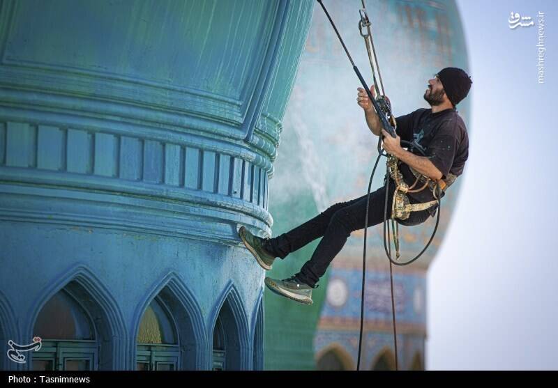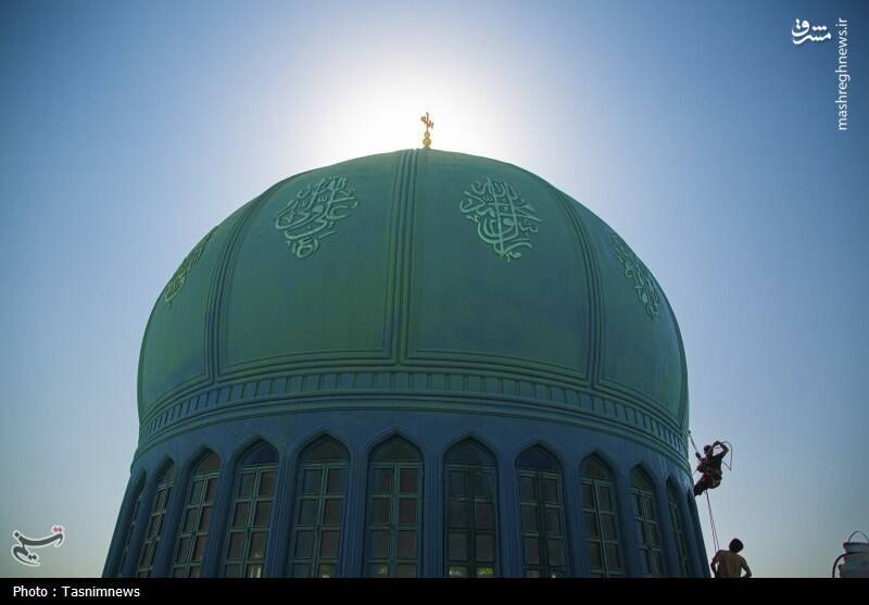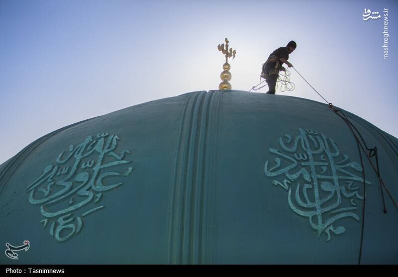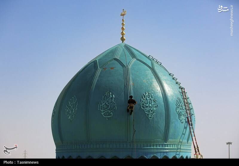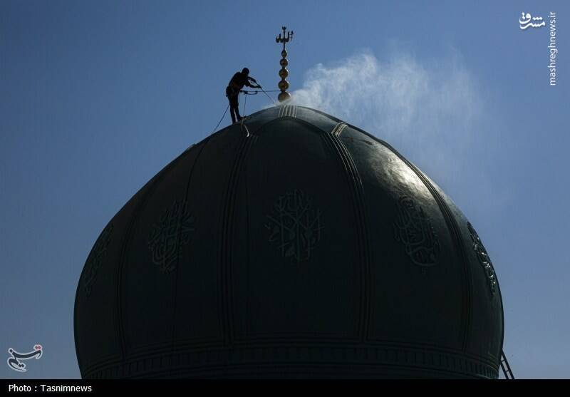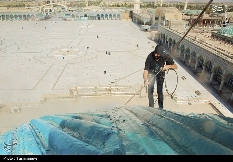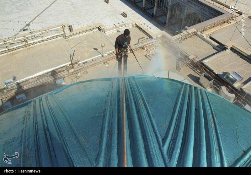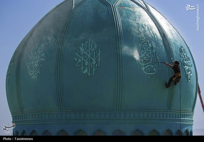 عکس/ شستشوی گنبدهای مسجد مقدس جمکران