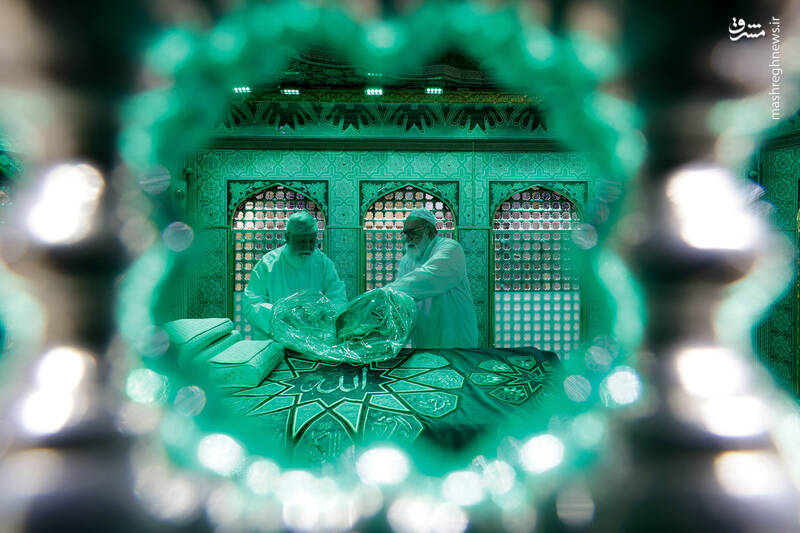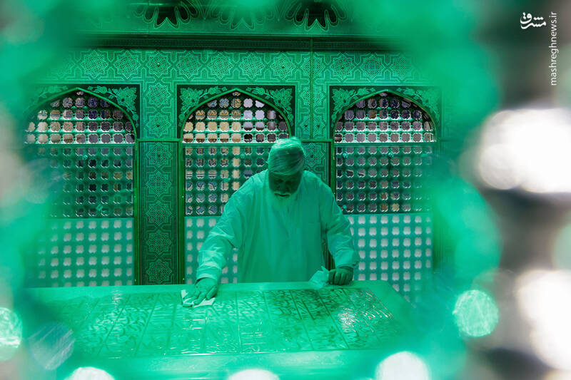 عکس/ غبارروبی ضریح مطهر امام رضا(ع) با حضور...